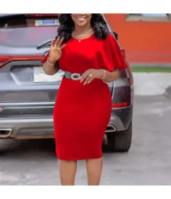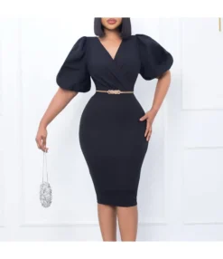 Elegant Flared Sleeve Round Neck Wrap Hip Pencil Dress Wholesale Dresses N5923080800079