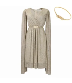 Elegant Solid Color V-Neck Button Down Dress With Belt And Corsage Wholesale Dresses N5923080800064