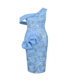 Casual Sequin One-Shoulder Diagonal Collar Large Bow Dress Wholesale Dresses V5923050600012