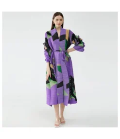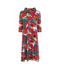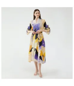 High Waist Floral Print Long Sleeve Stand-Up Collar Dress With Belt Wholesale Dresses N5323032800191