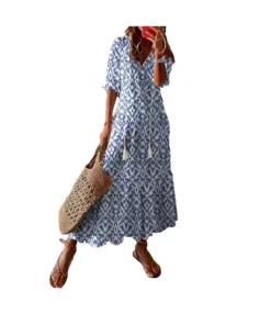 Vintage Sexy Off-Shoulder Print Slit Maxi Dress V Neck Wrap Long Sleeve Wholesale Dresses SD204708