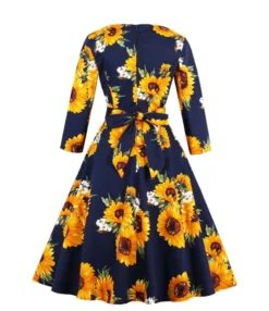 Puff Sleeve Floral Print Square Neck Elastic Waist Simple Swing Dress Wholesale Dresses SDN533522