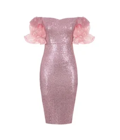 Puff Party Niche Puff Sleeve Stylish Pleated Solid Color Dress Wholesale Dresses N461523021400186