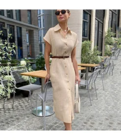 Casual Solid Color Waistless Short-Sleeved A-Line Shirt Dress Wholesale Dresses V5923032800071