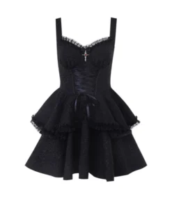 Dark Punk Tie Square Neck Mesh See-Through Short-Sleeved Dress Wholesale Dresses N4623071300007