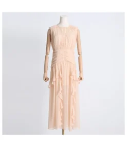 Elegant Ruffle Sleeves Solid Color V-Neck Waist Tie Long Dress Wholesale Dresses V5923041200041