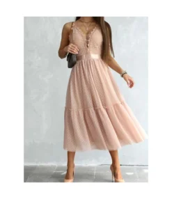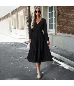 Elegant Solid Color V-Neck Button Down Dress With Belt And Corsage Wholesale Dresses N5923080800064