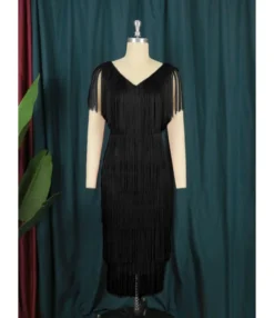 Fashion V-Neck Sleeveless High Waist Mid-Length Fringe Hip Dress Wholesale Dresses V5923050600028