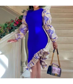 High Waist Floral Print Long Sleeve Stand-Up Collar Dress With Belt Wholesale Dresses N5323032800191