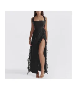 Sexy Halter Backless Wooden Ear Edge Short Sleeve Slim Party Dress Wholesale Dresses V5923050600019