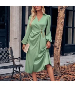 Casual V-Neck Solid Colour Tie Waist Long Sleeve Dress Wholesale Dresses N5923082300037