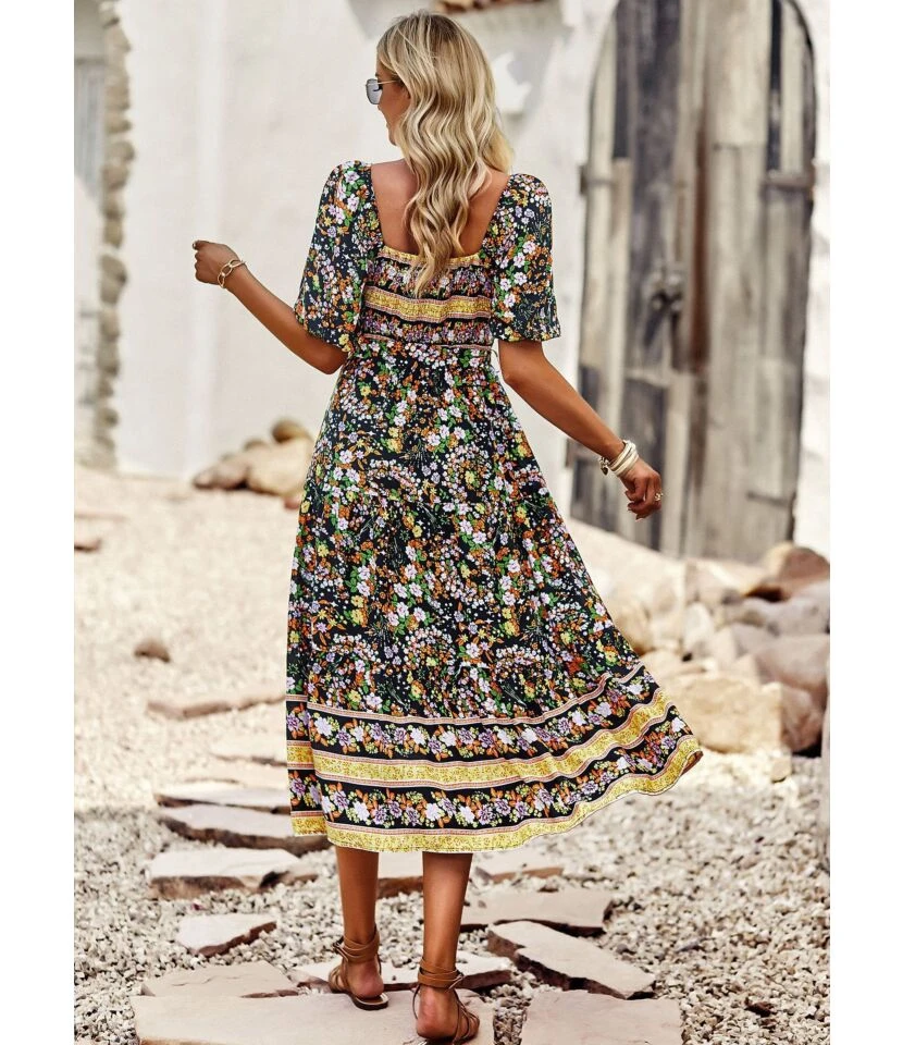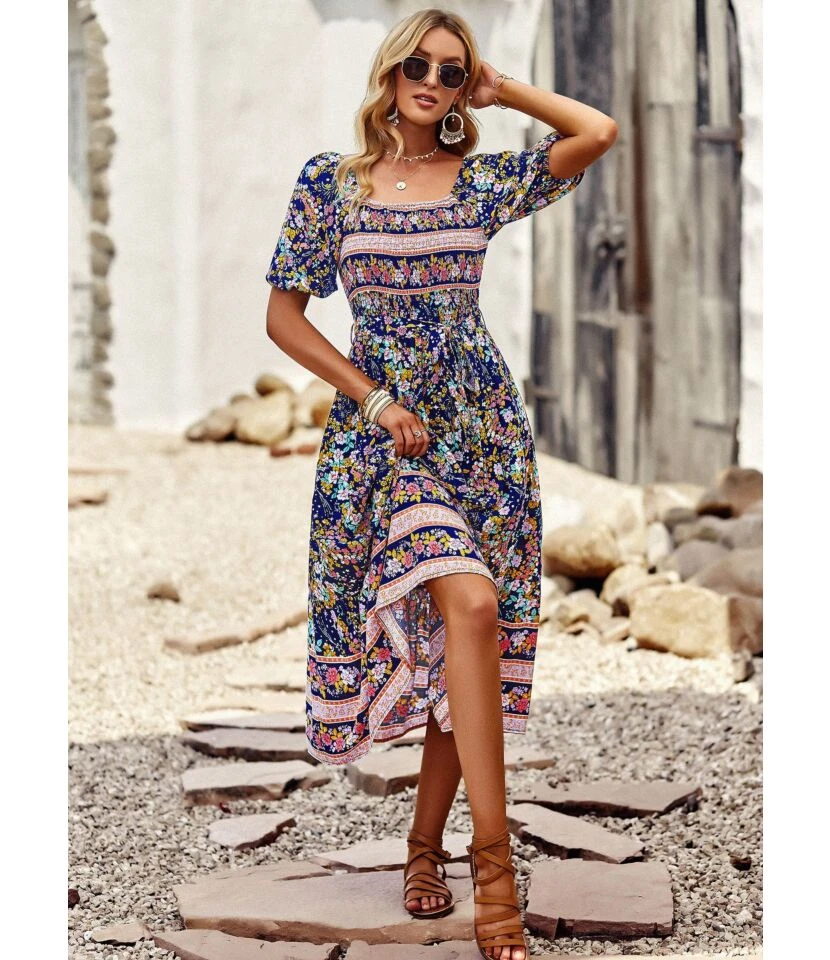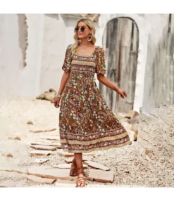 Printing Lace-Up Waist Single-Breasted Ladies T Shirt Dress Wholesale Clothing Vendors SD190539