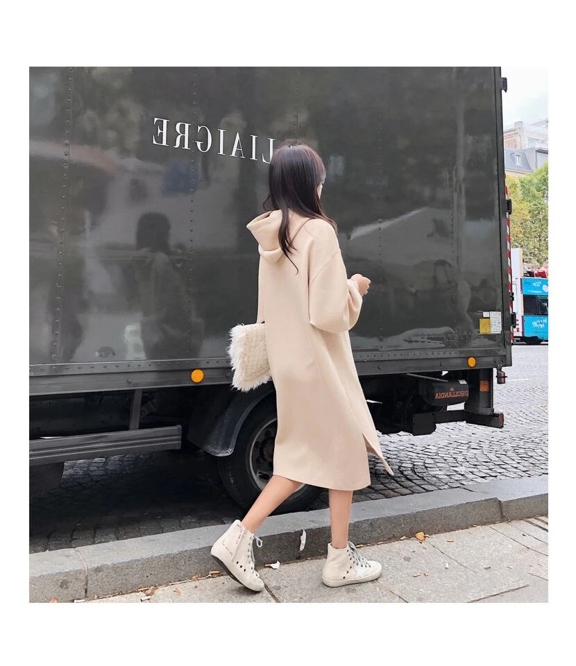 Casual Loose Long Sleeve Solid Color Drawstring Midi Hoodie Wholesale Sweatshirt Dress SDN562138