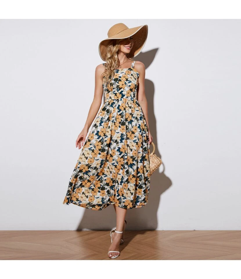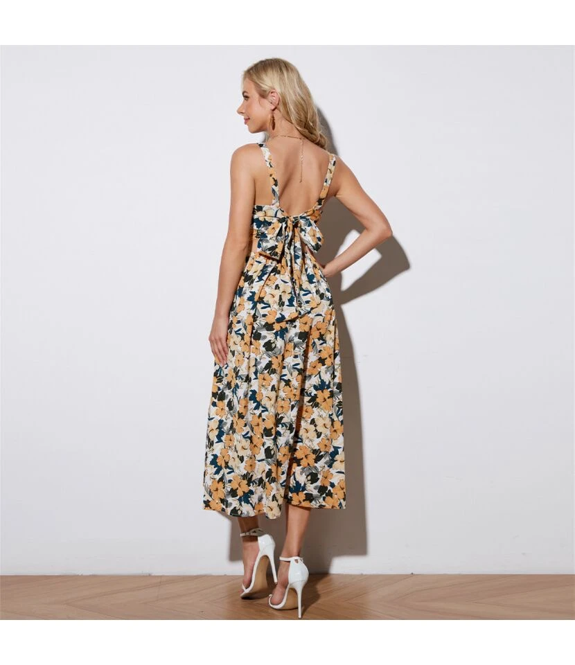 Casual Sleeveless Floral Sling Midi Dress Sexy Backless Lace Up Wholesale Dresses SDN560139