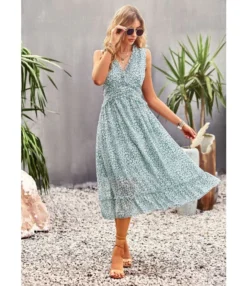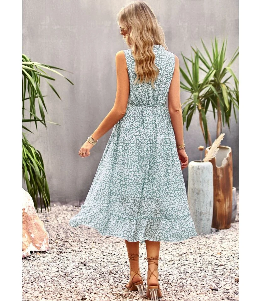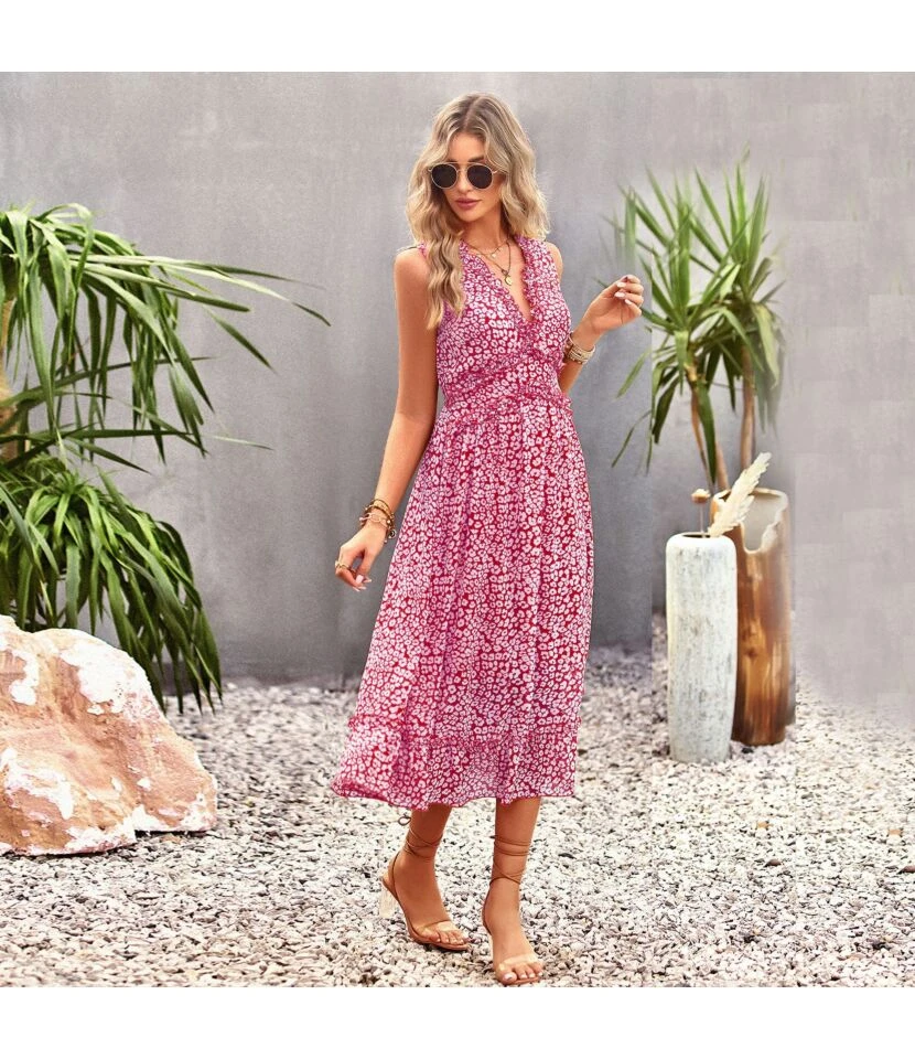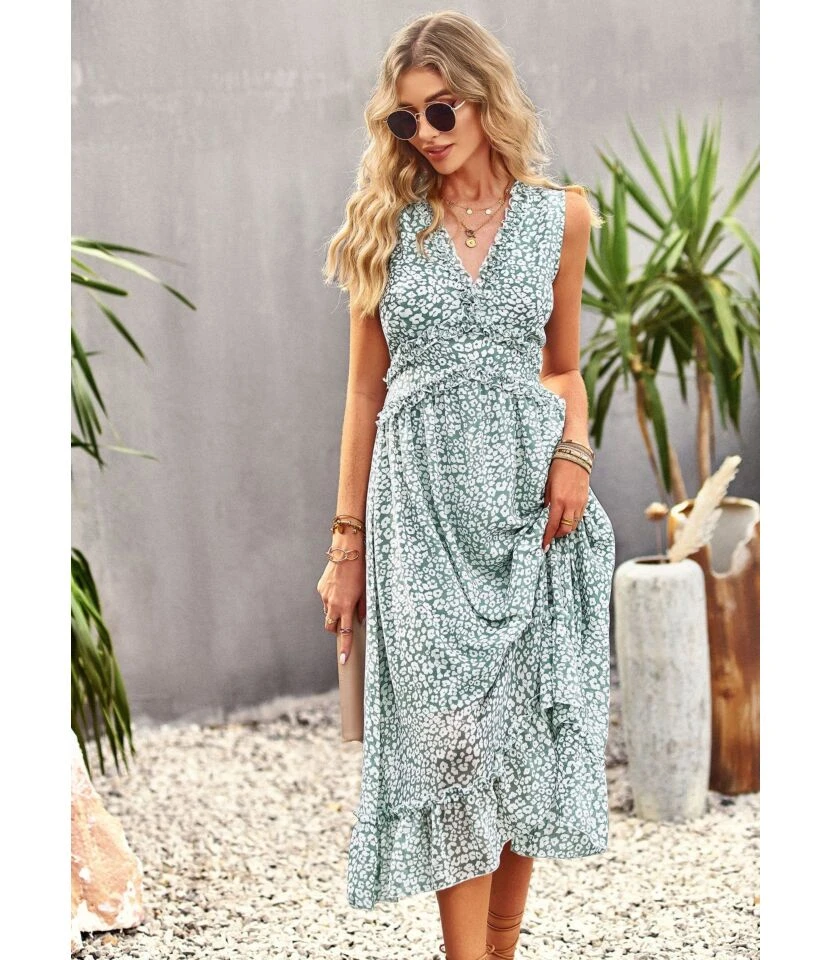 Casual French Vintage Print V-Neck Design Chiffon Dress Wholesale Dresses N5323032300036