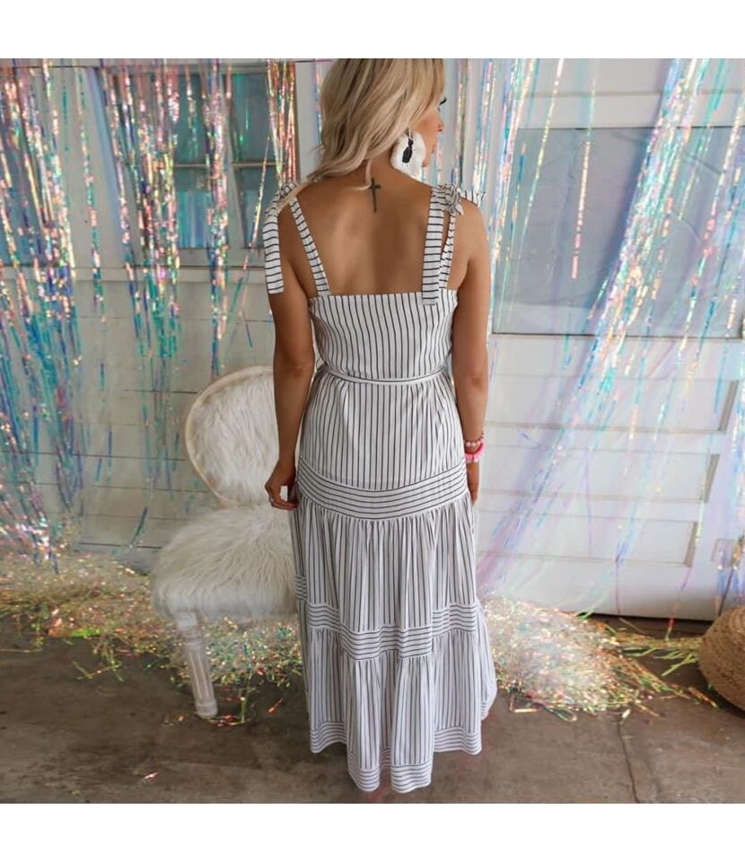 Casual Striped Sling Dress Backless Lace-Up Wholesale Dresses SDN561306