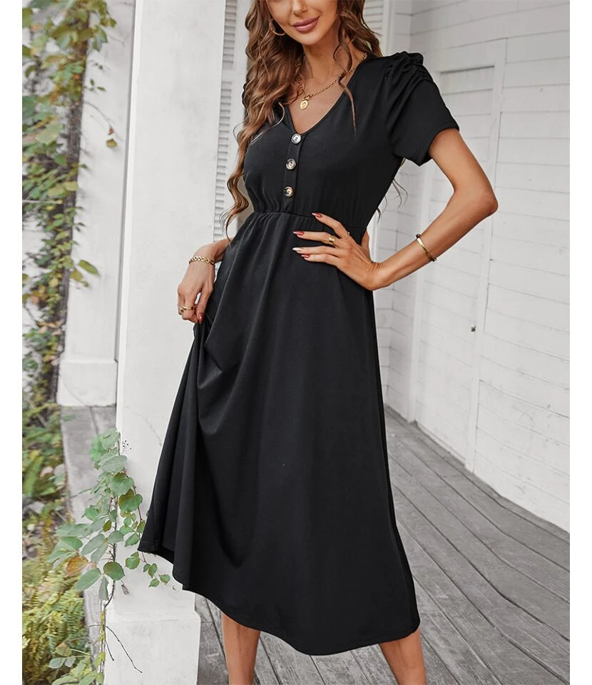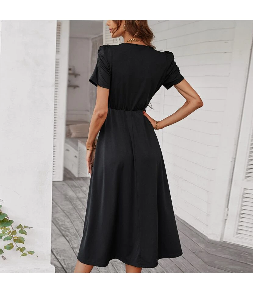 Casual V Neck Midi Dress Short Sleeve Solid Color Slim Swing Wholesale Dresses SDN560511