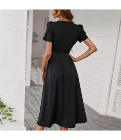 Be the first to review “Casual V Neck Midi Dress Short Sleeve Solid Color Slim Swing Wholesale Dresses SDN560511” Cancel reply