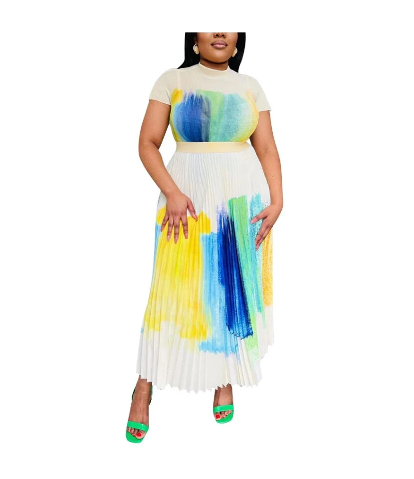 Printing Lace-Up Waist Single-Breasted Ladies T Shirt Dress Wholesale Clothing Vendors SD190539