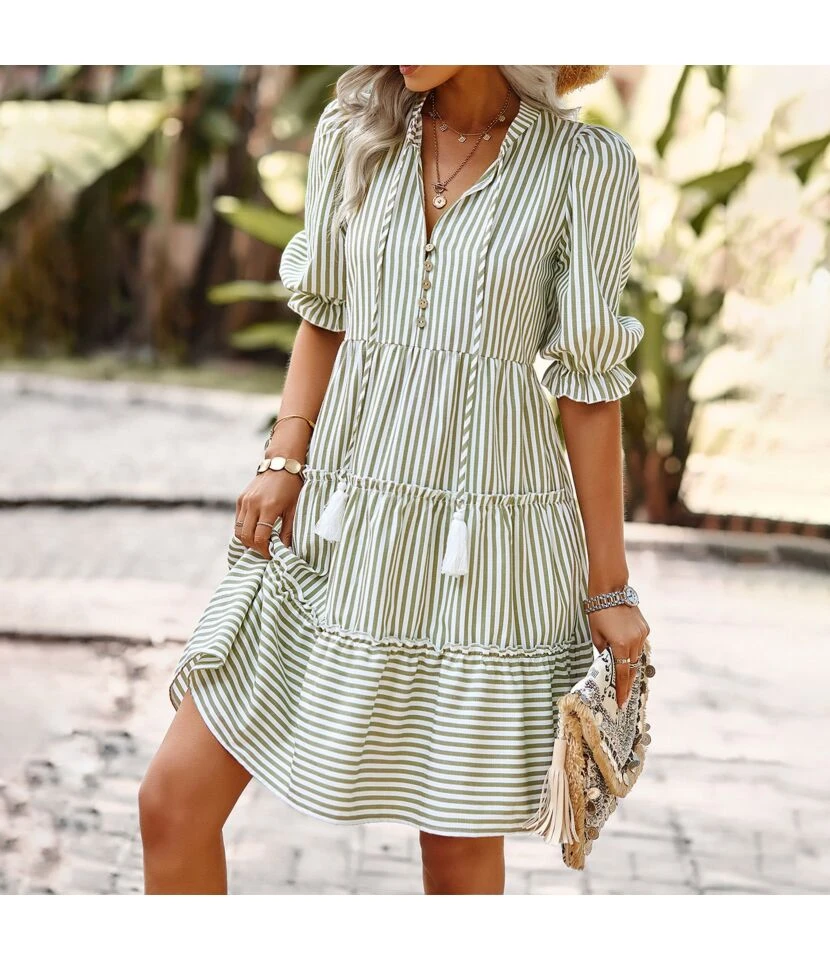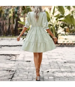 Be the first to review “Commuter Stripe V-Neck Balloon Sleeve Dress Wholesale Dresses N4623041900027” Cancel reply