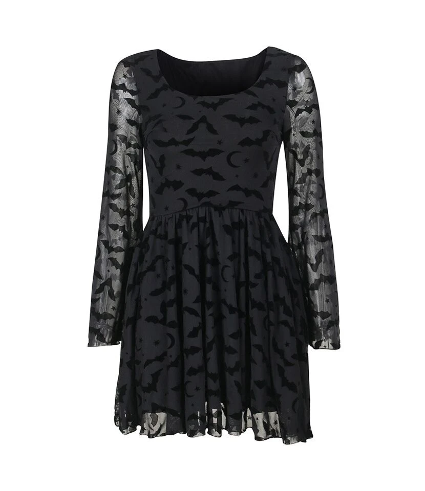 Dark Temperament Bat Jacquard Bell Sleeve A Swing Dress Wholesale Dresses Without Belt N46923031300022