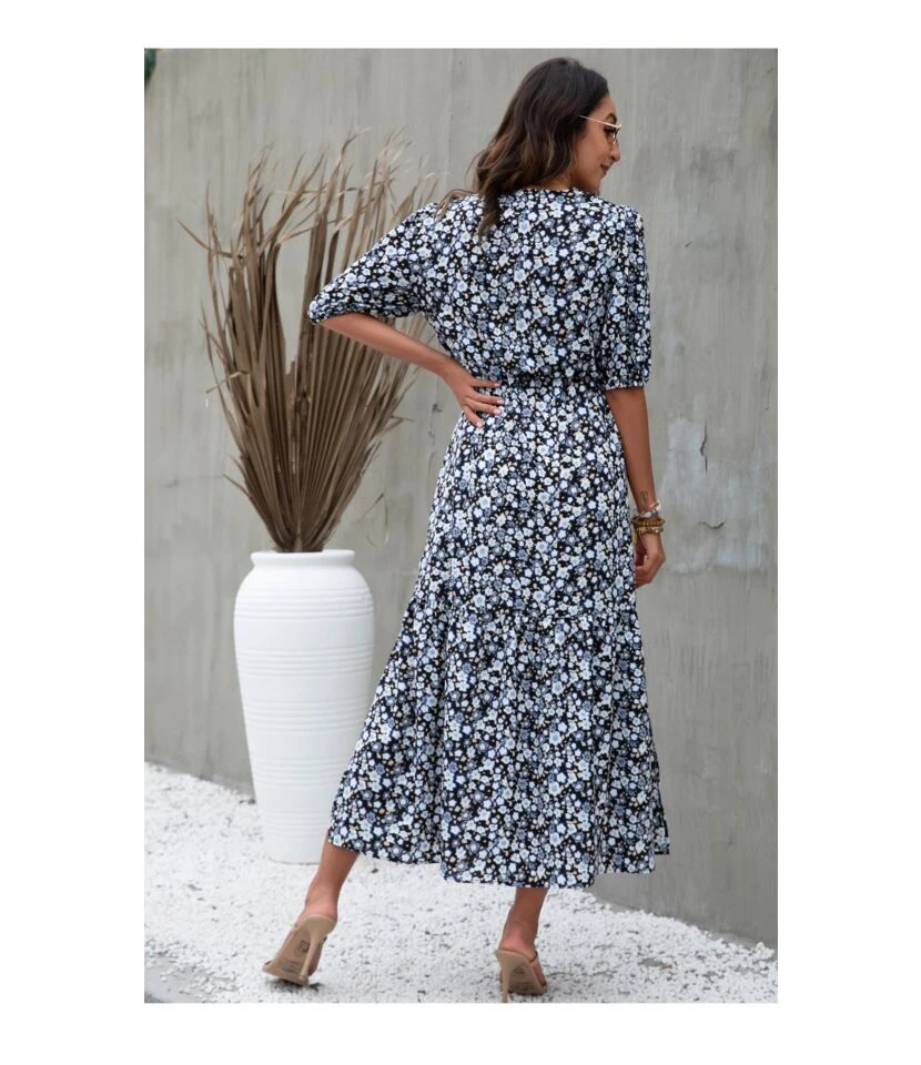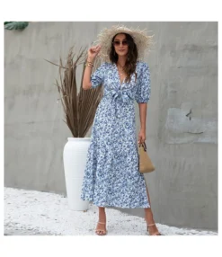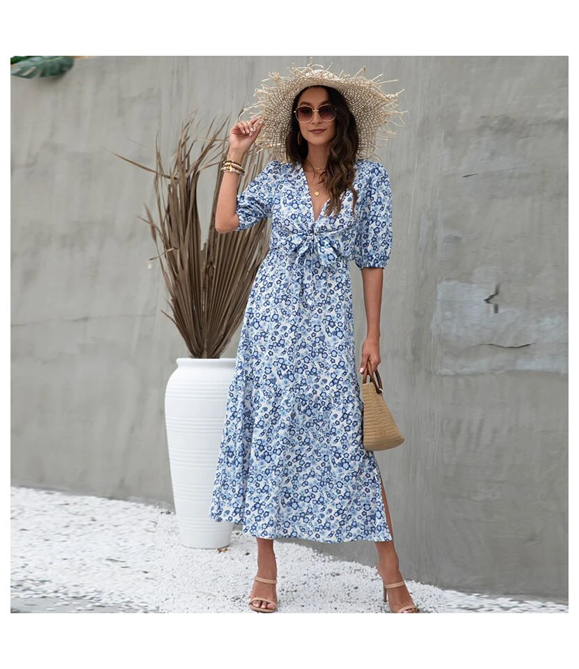 Be the first to review “Elegant Lantern Sleeve Knotted Print Midi Dress Sexy V Neck Side Slit Wholesale Dresses SDN560361” Cancel reply