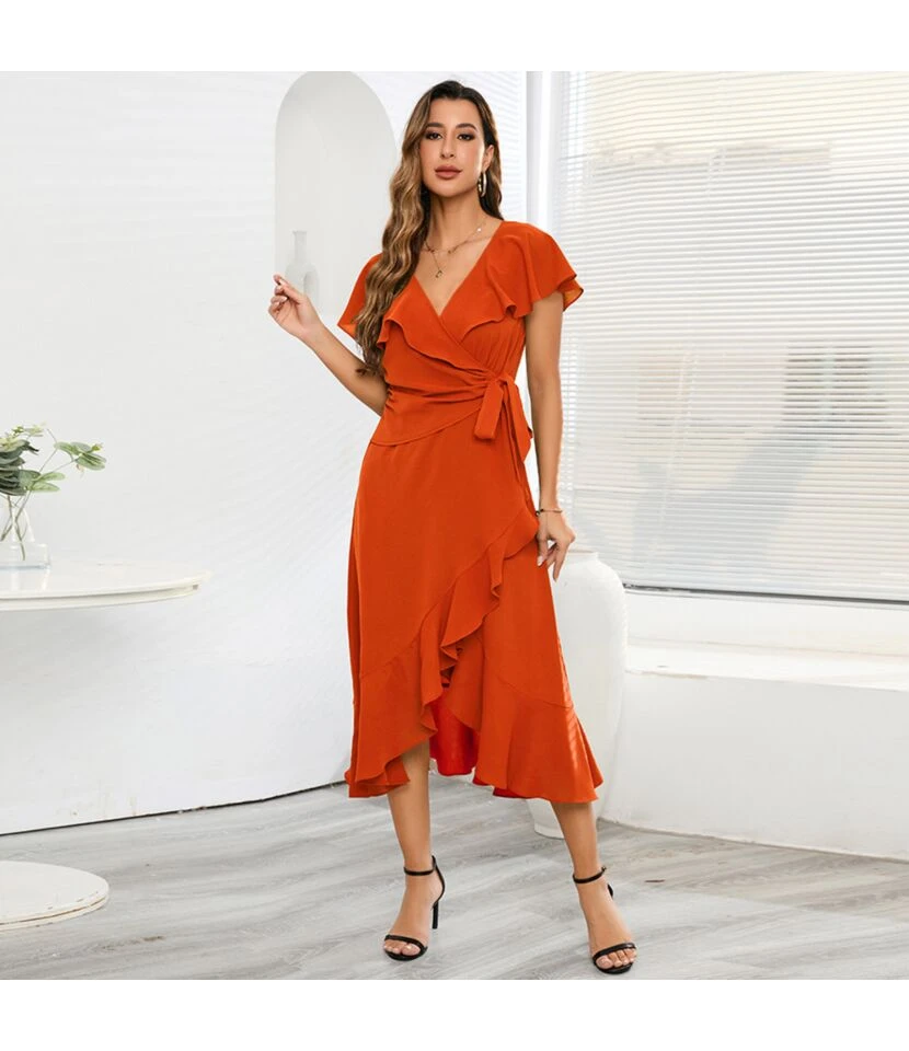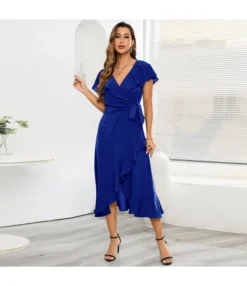 Casual V-Neck Lapel Mini Dress Single-Breasted Long Sleeve Bodycon Wholesale Dresses SDN562274