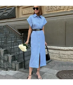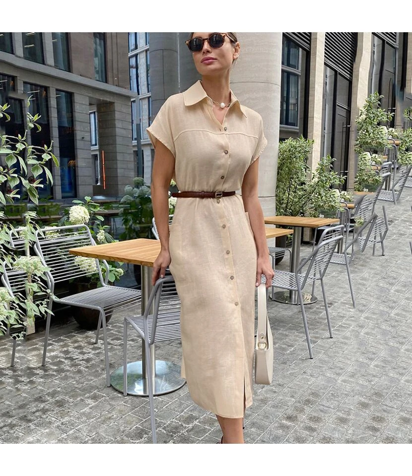 Casual V-Neck Lapel Mini Dress Single-Breasted Long Sleeve Bodycon Wholesale Dresses SDN562274