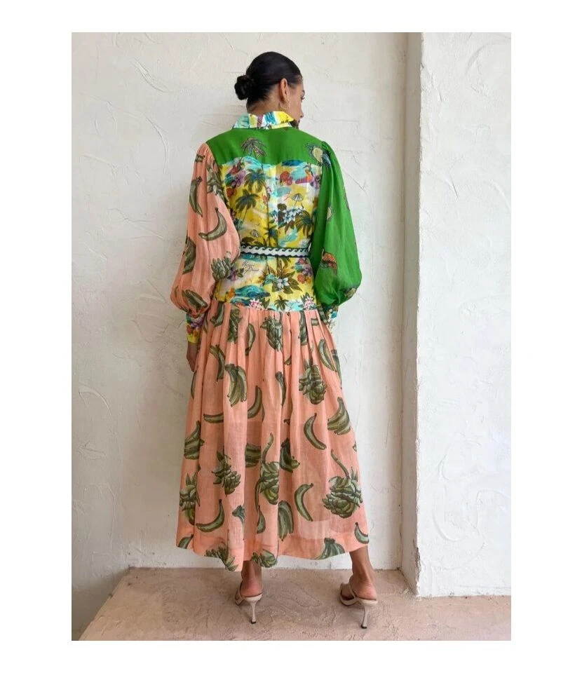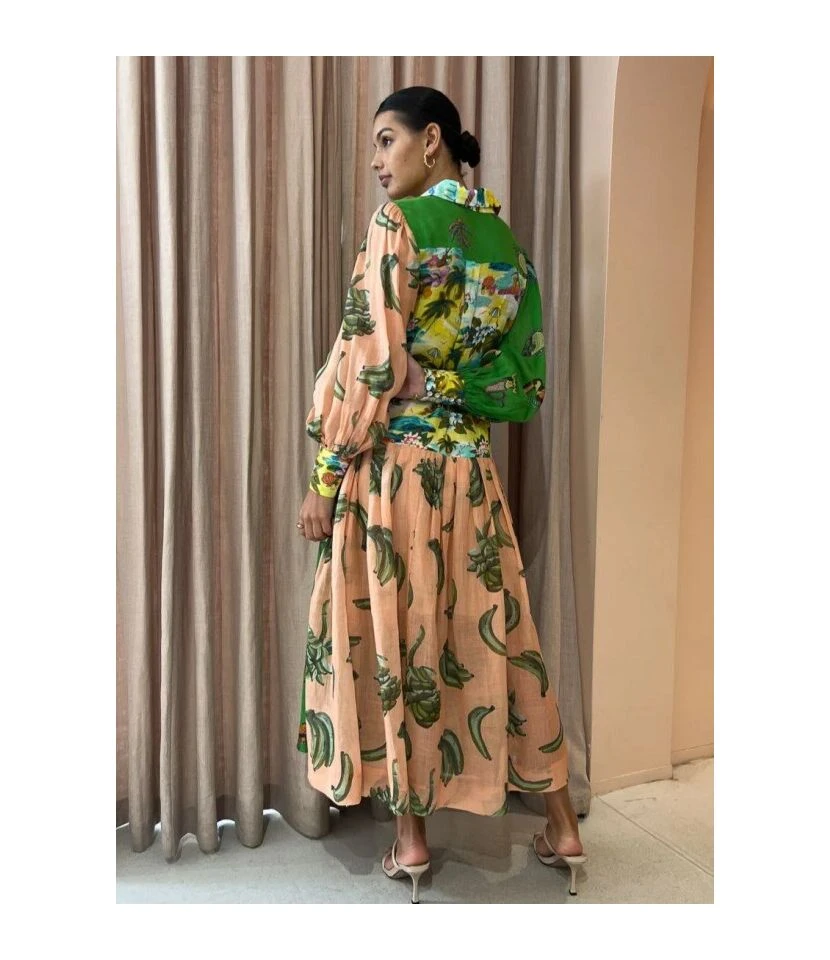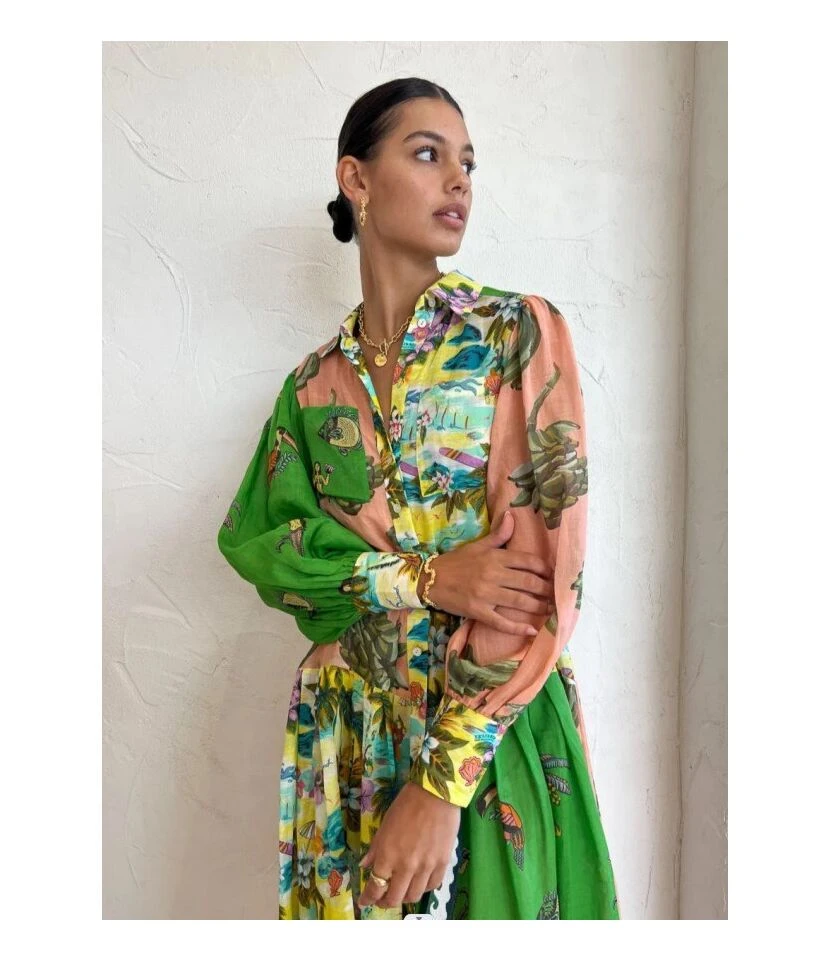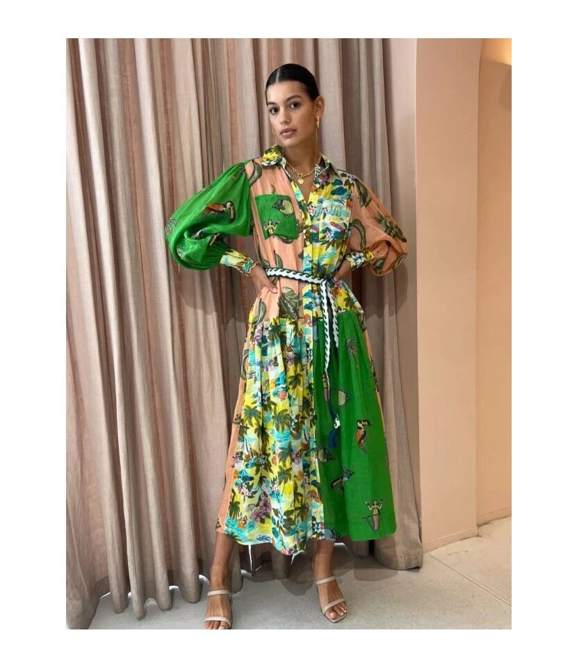 Casual French Vintage Print V-Neck Design Chiffon Dress Wholesale Dresses N5323032300036