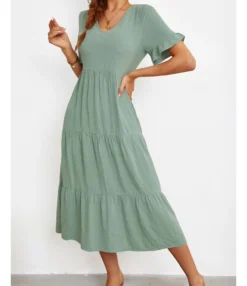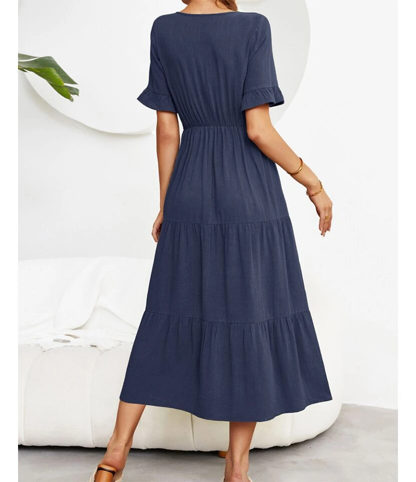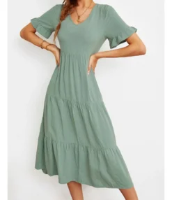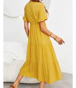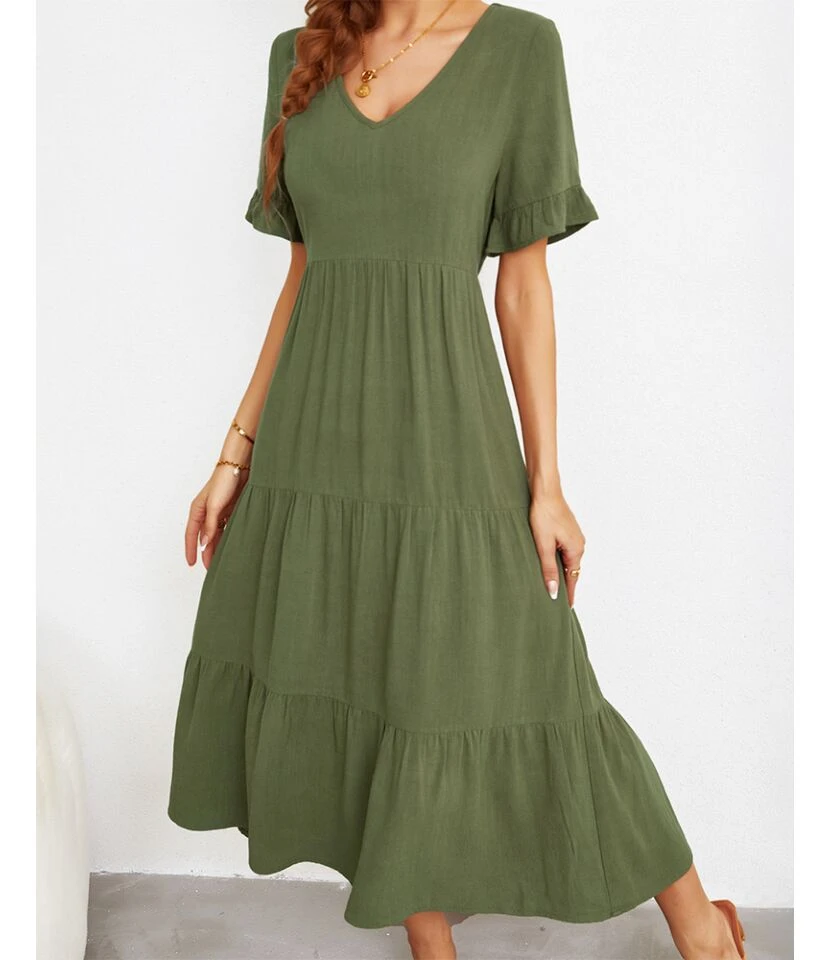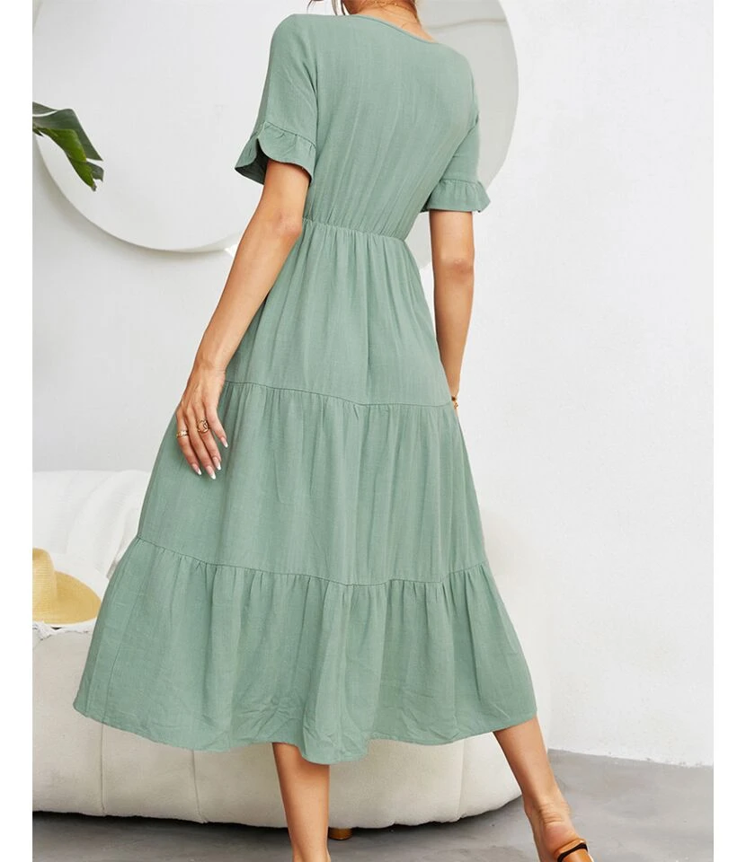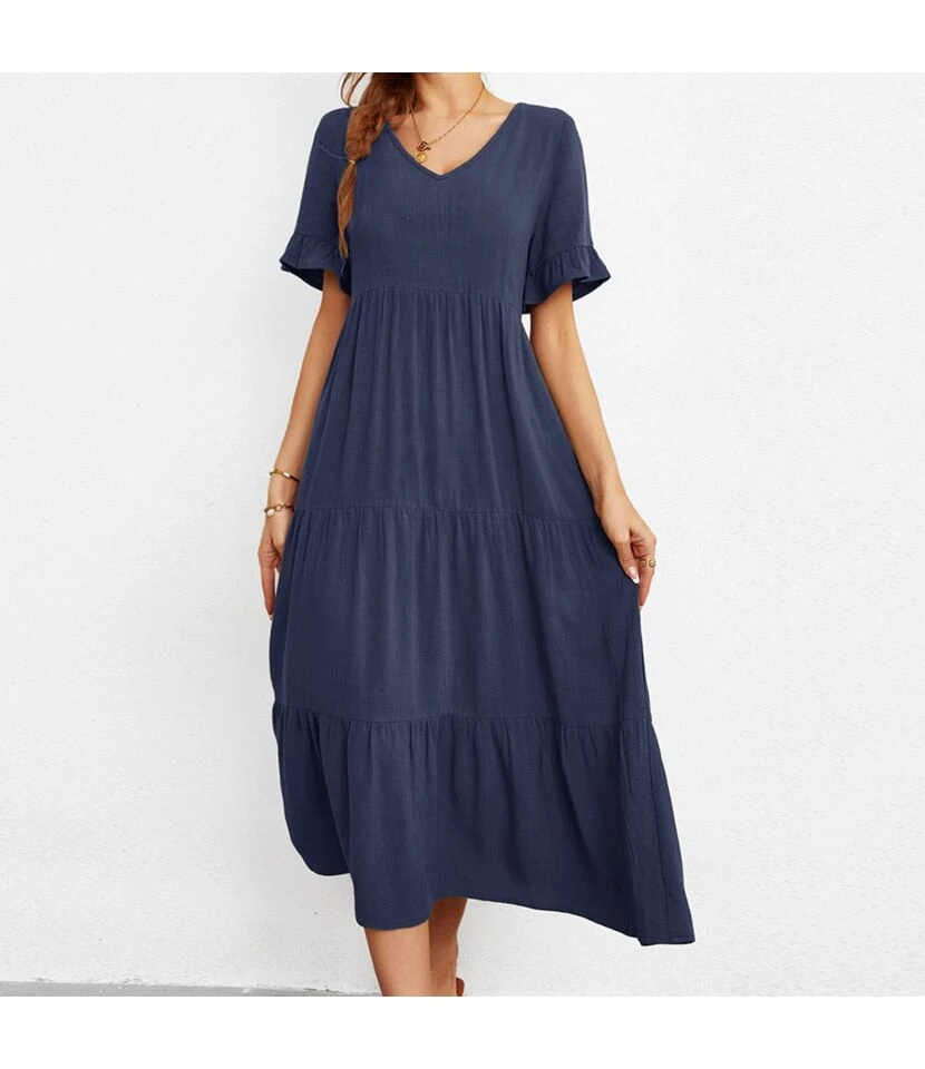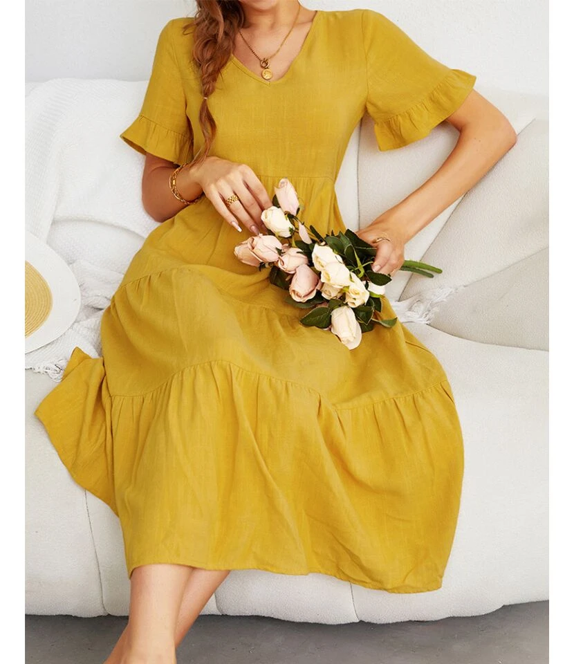 Fashion Loose V-Neck Swing Dress Short Sleeve Solid Color Wholesale Dresses SDN560290