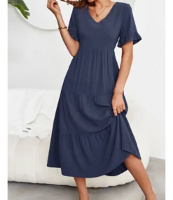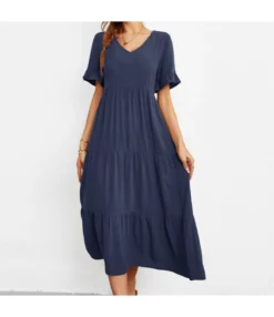Be the first to review “Fashion Loose V-Neck Swing Dress Short Sleeve Solid Color Wholesale Dresses SDN560290” Cancel reply