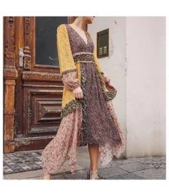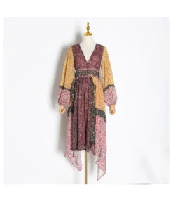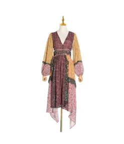 Be the first to review “Fashion Printed Holiday Chiffon Deep V Lantern Sleeve Retro Waist Irregular Big Swing Dress Wholesale Bohemian Dress For Women SD531277” Cancel reply