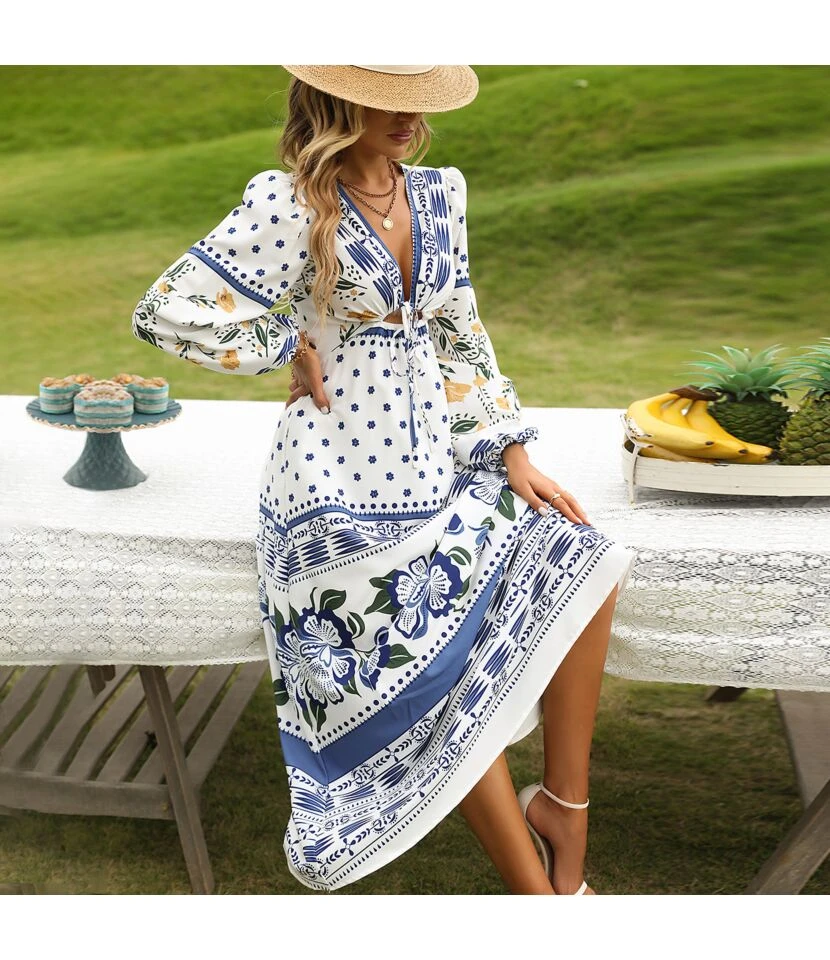 Casual V-Neck Lapel Mini Dress Single-Breasted Long Sleeve Bodycon Wholesale Dresses SDN562274