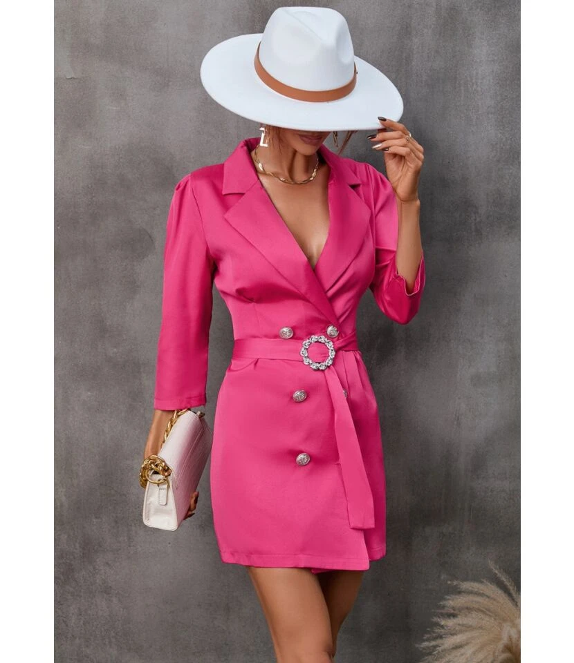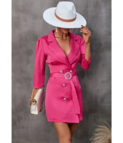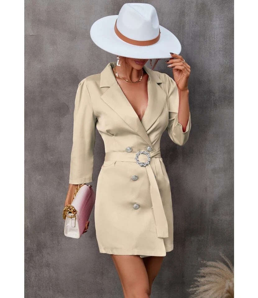 Casual V-Neck Lapel Mini Dress Single-Breasted Long Sleeve Bodycon Wholesale Dresses SDN562274