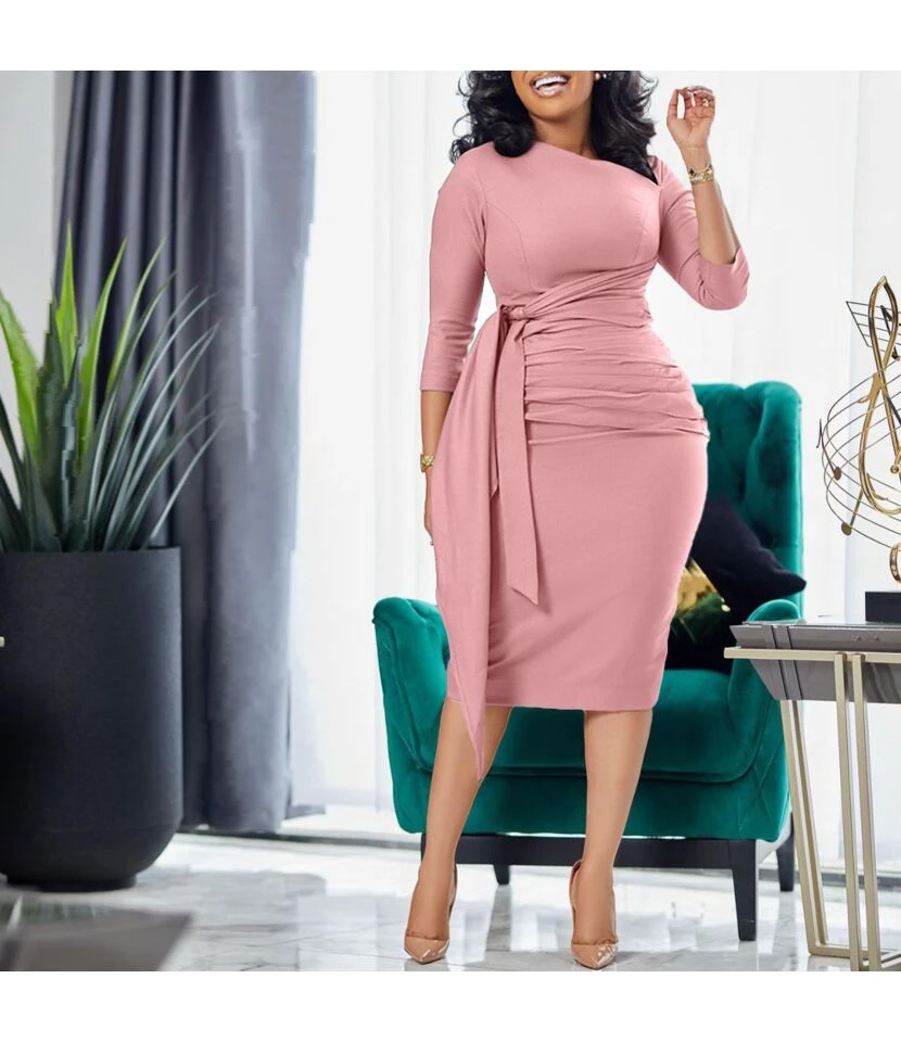 Printing Lace-Up Waist Single-Breasted Ladies T Shirt Dress Wholesale Clothing Vendors SD190539