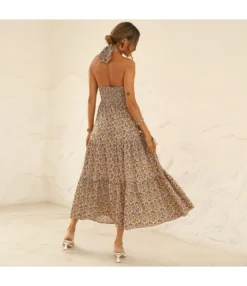 Be the first to review “Floral Print Crossover Halterneck Open Back Big Swing Smocked Dress Vacation Wholesale Dresses SDN532624” Cancel reply