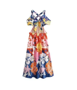 Casual French Vintage Print V-Neck Design Chiffon Dress Wholesale Dresses N5323032300036