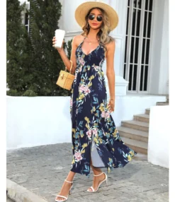 Be the first to review “Floral Print Deep-V Halterneck Open Back Slit Sling Dress Sexy Resort Sundresses Wholesale Dresses SDN533160” Cancel reply