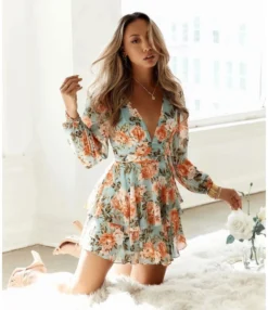 Be the first to review “Floral Print Deep-V Lantern Sleeve Open Back High Waist Double Ruffle Dress Chic Wholesale Dresses SDN533019” Cancel reply