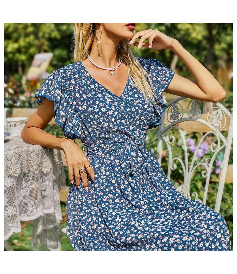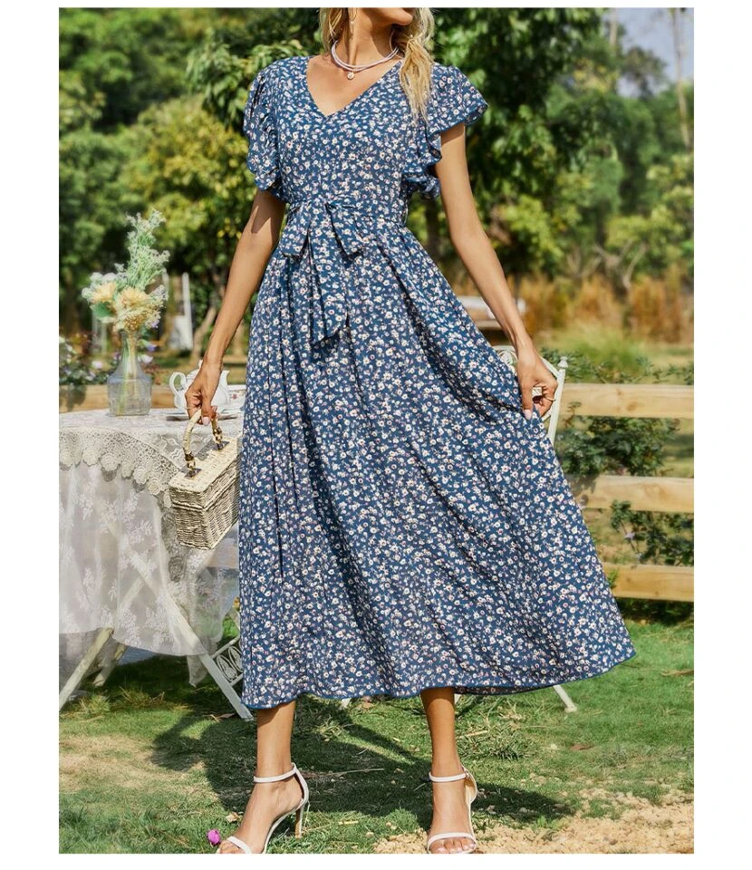 Be the first to review “Floral Print V Neck Lace-Up Ruffle Sleeve Midi Swing Dress Summer Casual Wholesale Dresses SDN532703” Cancel reply