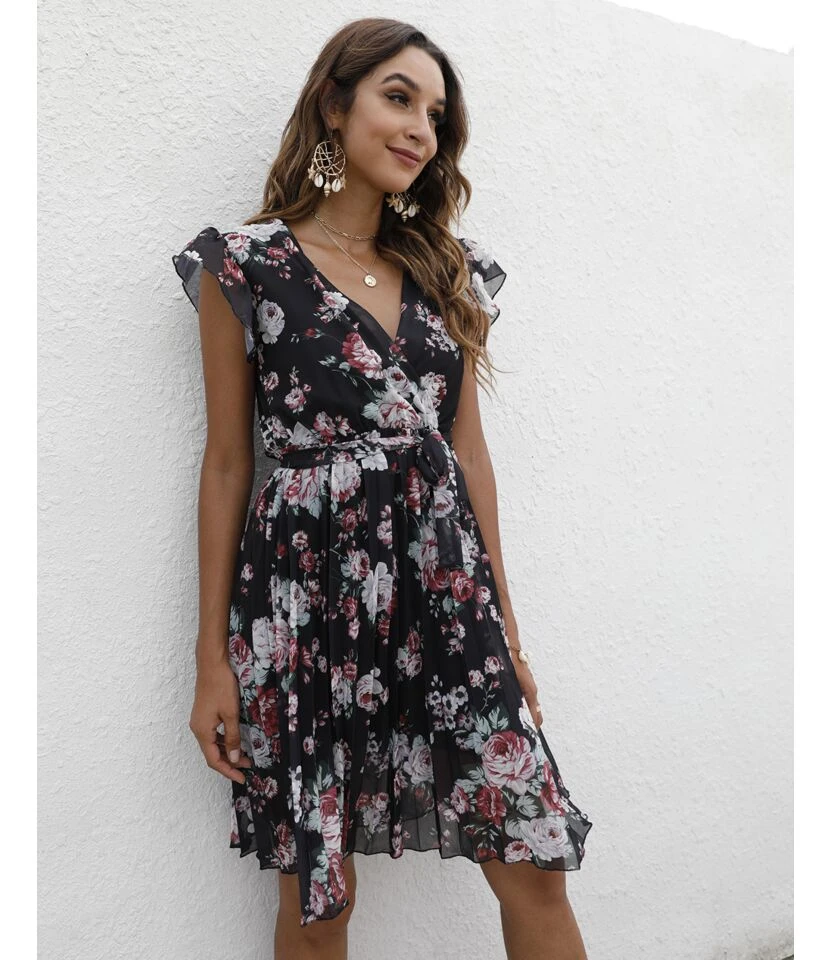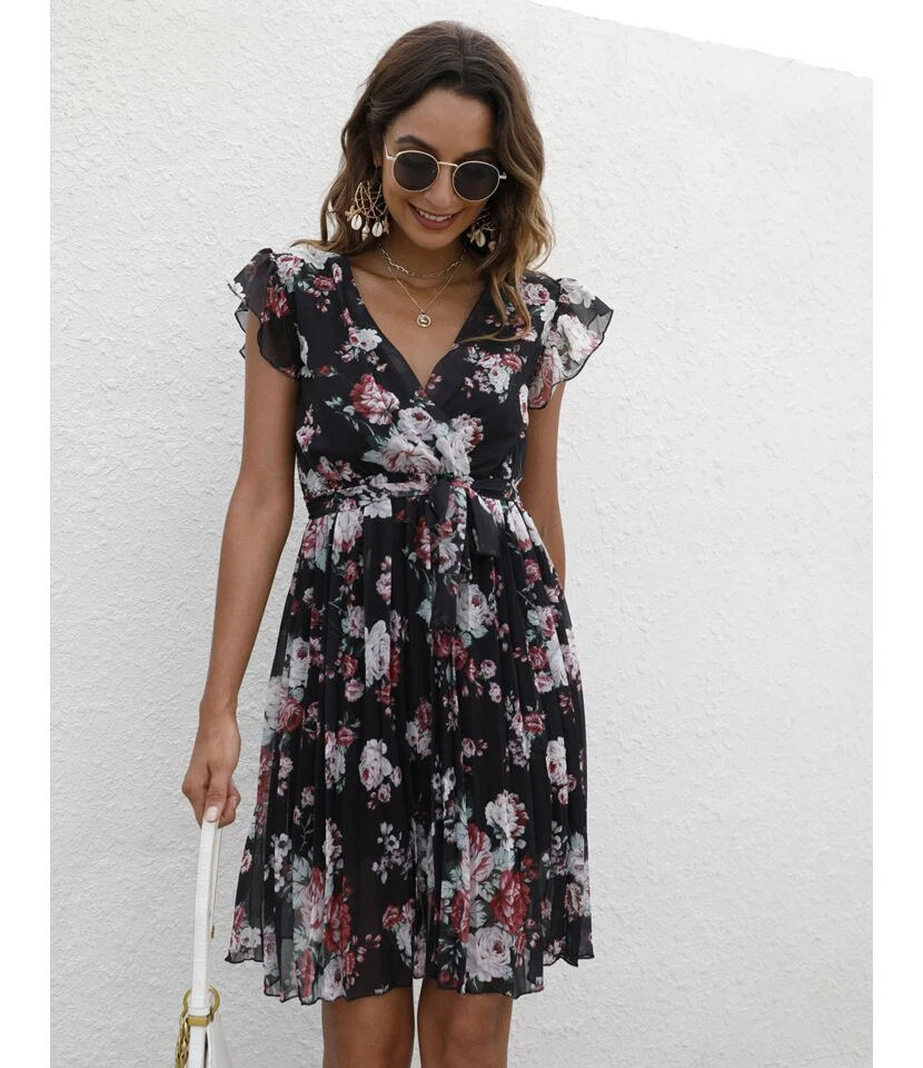 Be the first to review “Floral Print V-Neck Ruffle Sleeve Tie-Up Chiffon Swing Dress Casual Wholesale Dresses SDN532738” Cancel reply