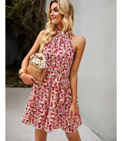 Be the first to review “Floral Printed Sleeveless Halter Neck Tie-Up Waist Ruffled Dress Vacation Wholesale Dresses SDN533143” Cancel reply