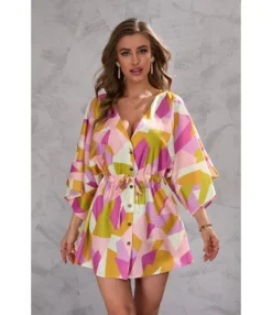 Be the first to review “Geometric Print Deep-V Half Flare Sleeve Lace-Up Drawstring Mini Dress Resort Wholesale Dresses SDN533159” Cancel reply
