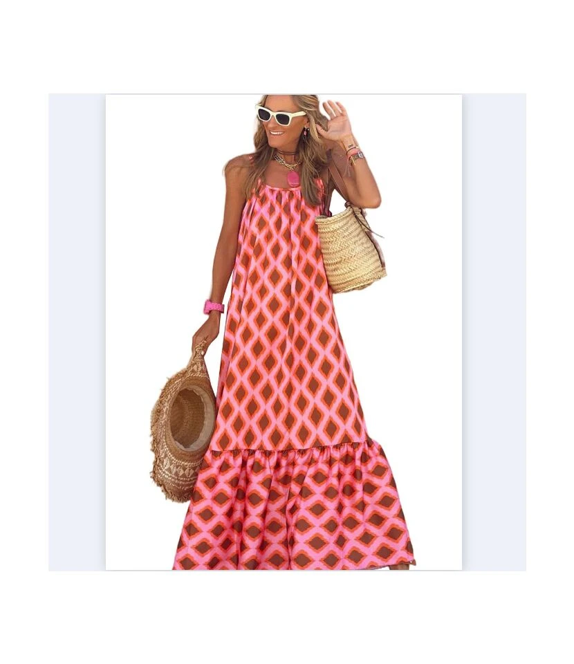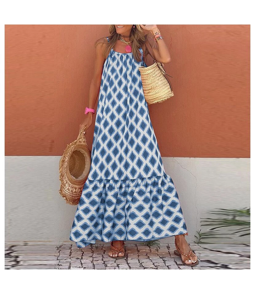 Geometric Print Loose Sling Sleeveless Dress Wholesale Dresses N4623051900013