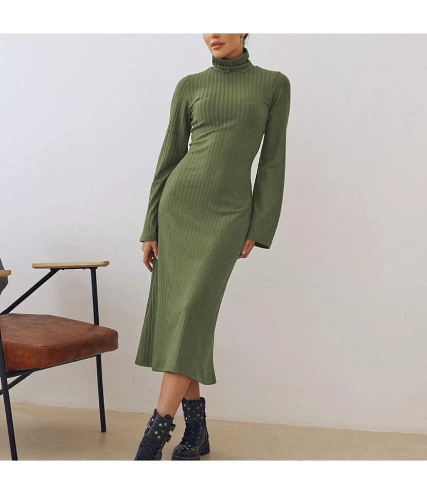 High-Neck Solid Color Slim Fit Midi Dress Wholesale Dresses SDV463833
