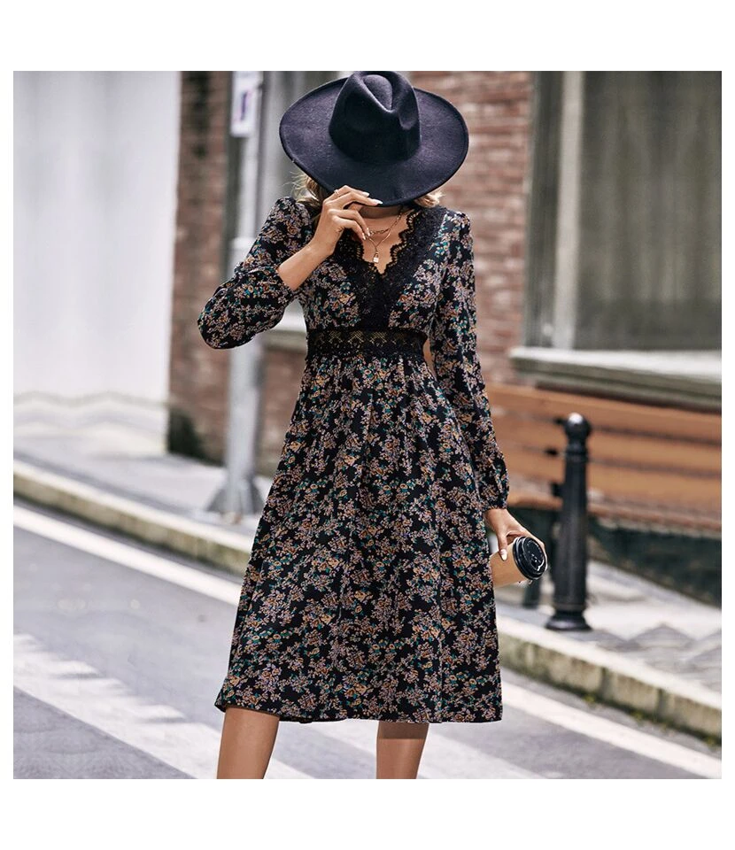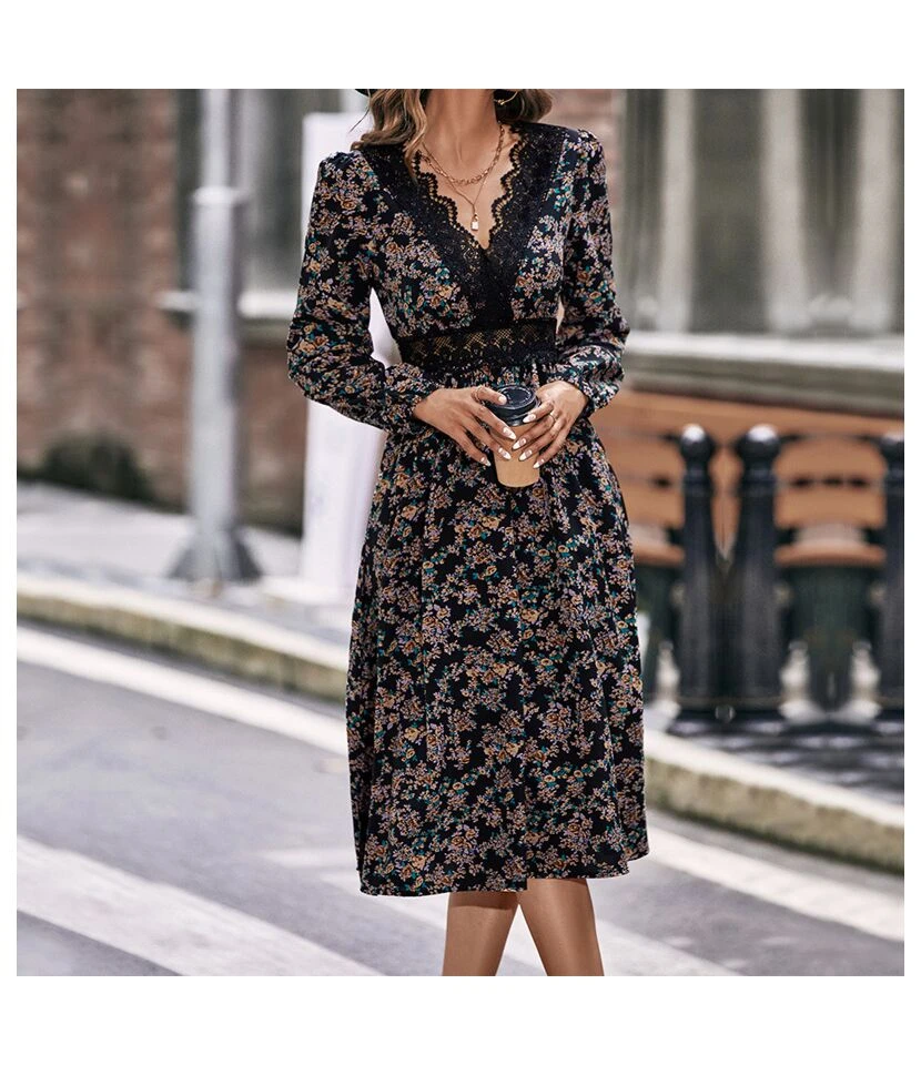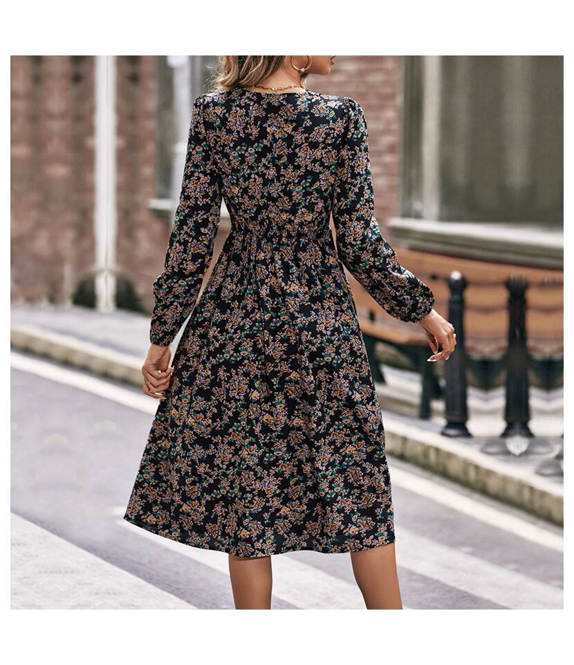 Casual V-Neck Lapel Mini Dress Single-Breasted Long Sleeve Bodycon Wholesale Dresses SDN562274