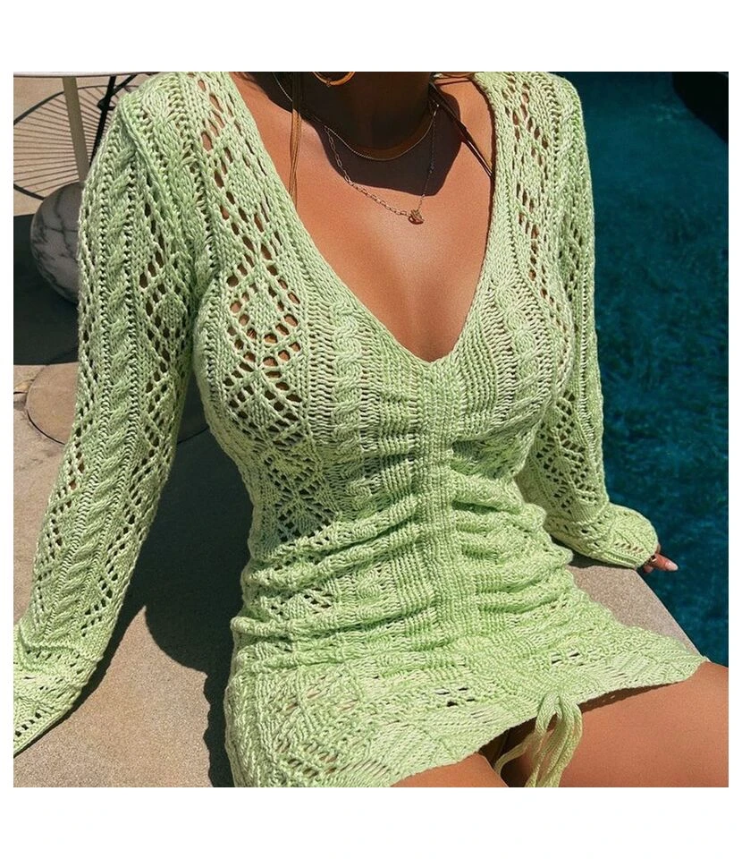 Casual V-Neck Lapel Mini Dress Single-Breasted Long Sleeve Bodycon Wholesale Dresses SDN562274