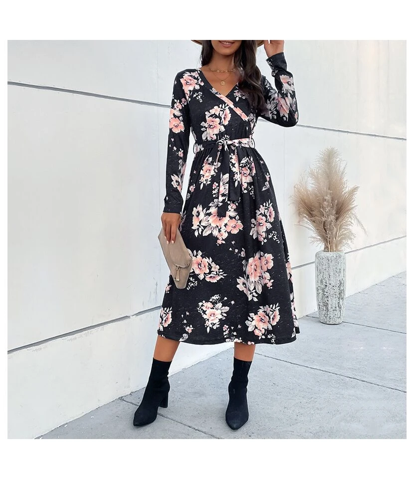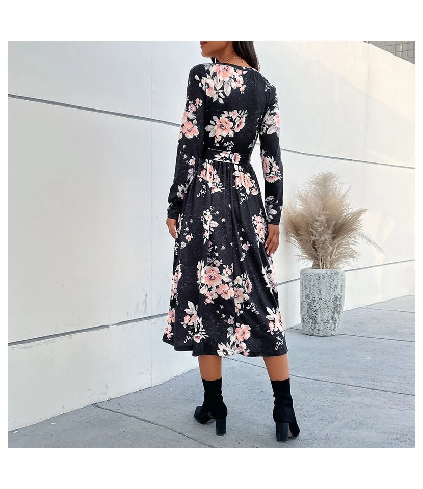 Casual V-Neck Lapel Mini Dress Single-Breasted Long Sleeve Bodycon Wholesale Dresses SDN562274