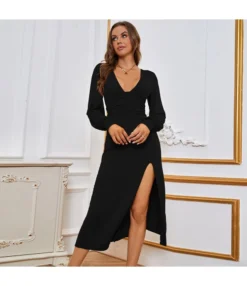 Be the first to review “Long-Sleeved Simple Sexy V-Neck Slit Slim-Fit Temperament A-Line Dress Wholesale Dresses SDV464516” Cancel reply