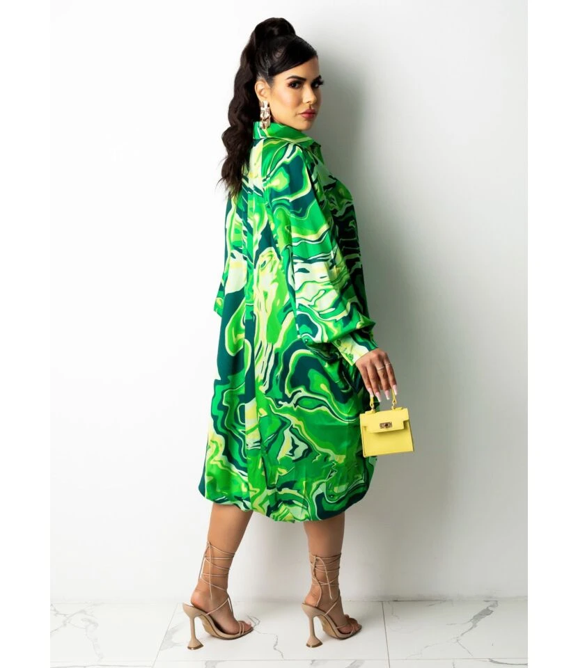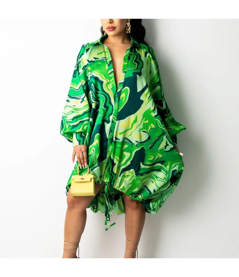 LOOSE PRINTING DRAWSTRING BUTTON DOWN ASYMMETRICAL